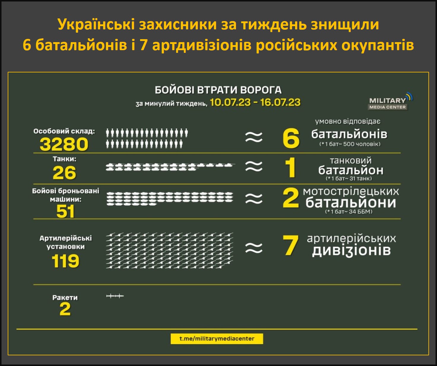 Факт. Кількість знищеної ворожої техніки протягом 10-16 липня