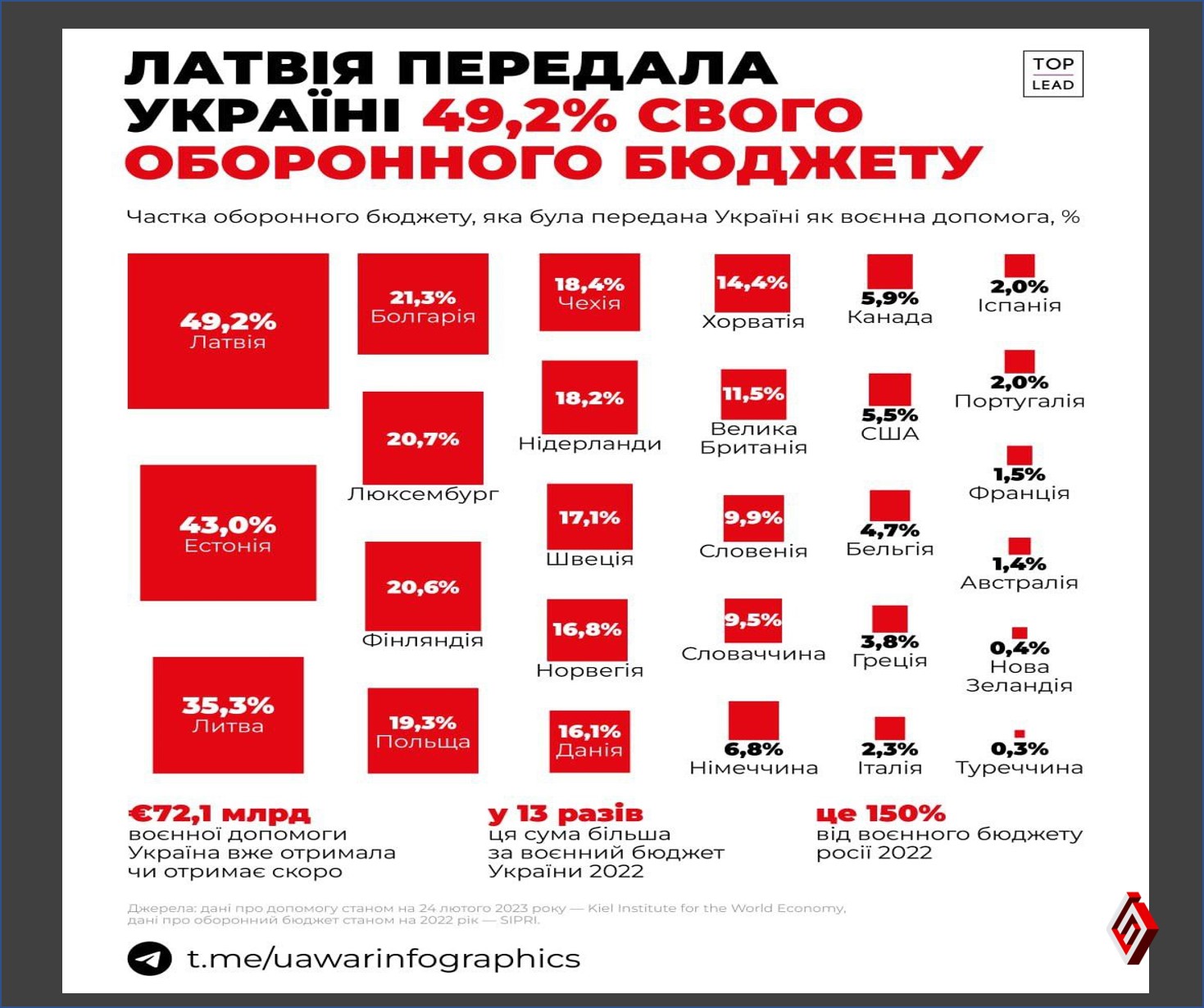 Факт. Скільки відсотків свого оборонного бюджету надають Україні союзники