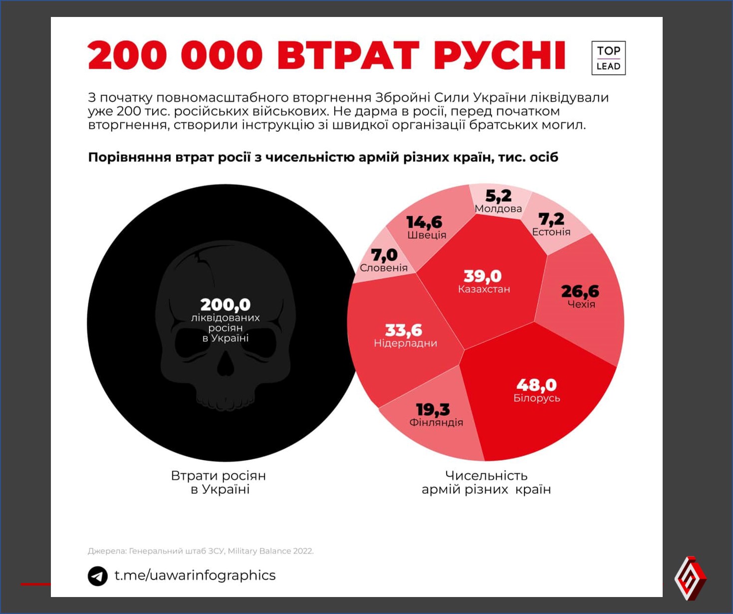 Факт. Втрати росії у війні з Україною у порівнянні з чисельнічтю армій деяких країн