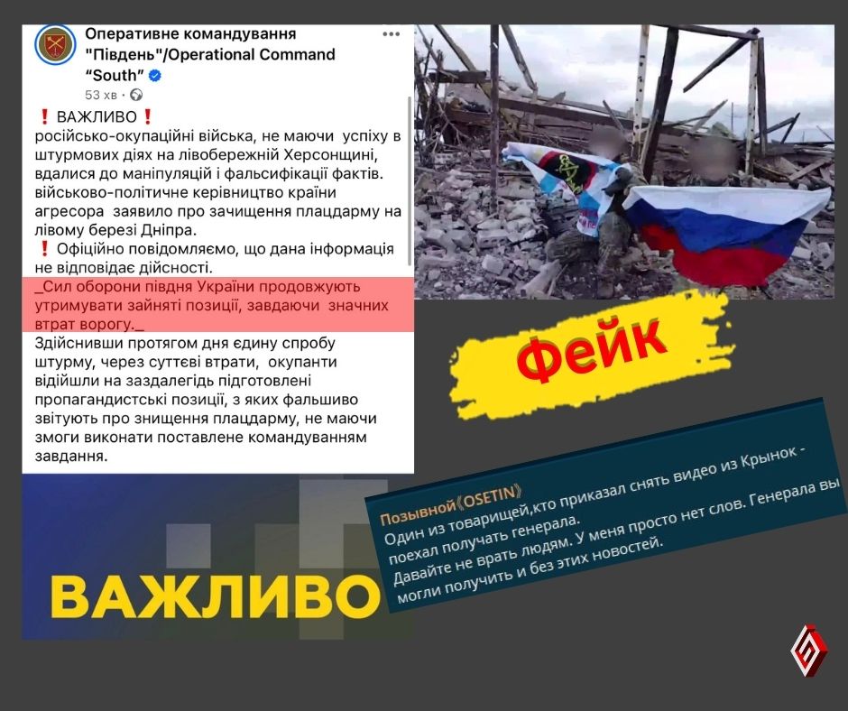 Це свідчить про те, що ніякі Кринки не “їхні”, контролю над територією вони не мають, а відео – постановочне. Оперативне командування “Південь” брехню про зачищення плацдарму офіційно заперечило: