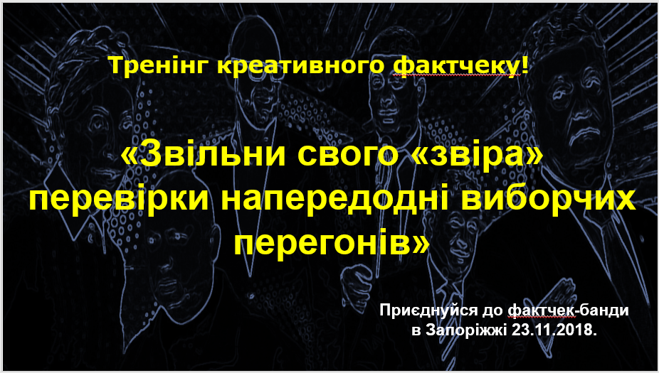 Хто має стійке бажання «шмагати» лозиною фактчекінгу по брехні та маніпуляціям політиків – чекаємо на тренінг креативного фактчеку (подається з передвиборчим «смаком»).