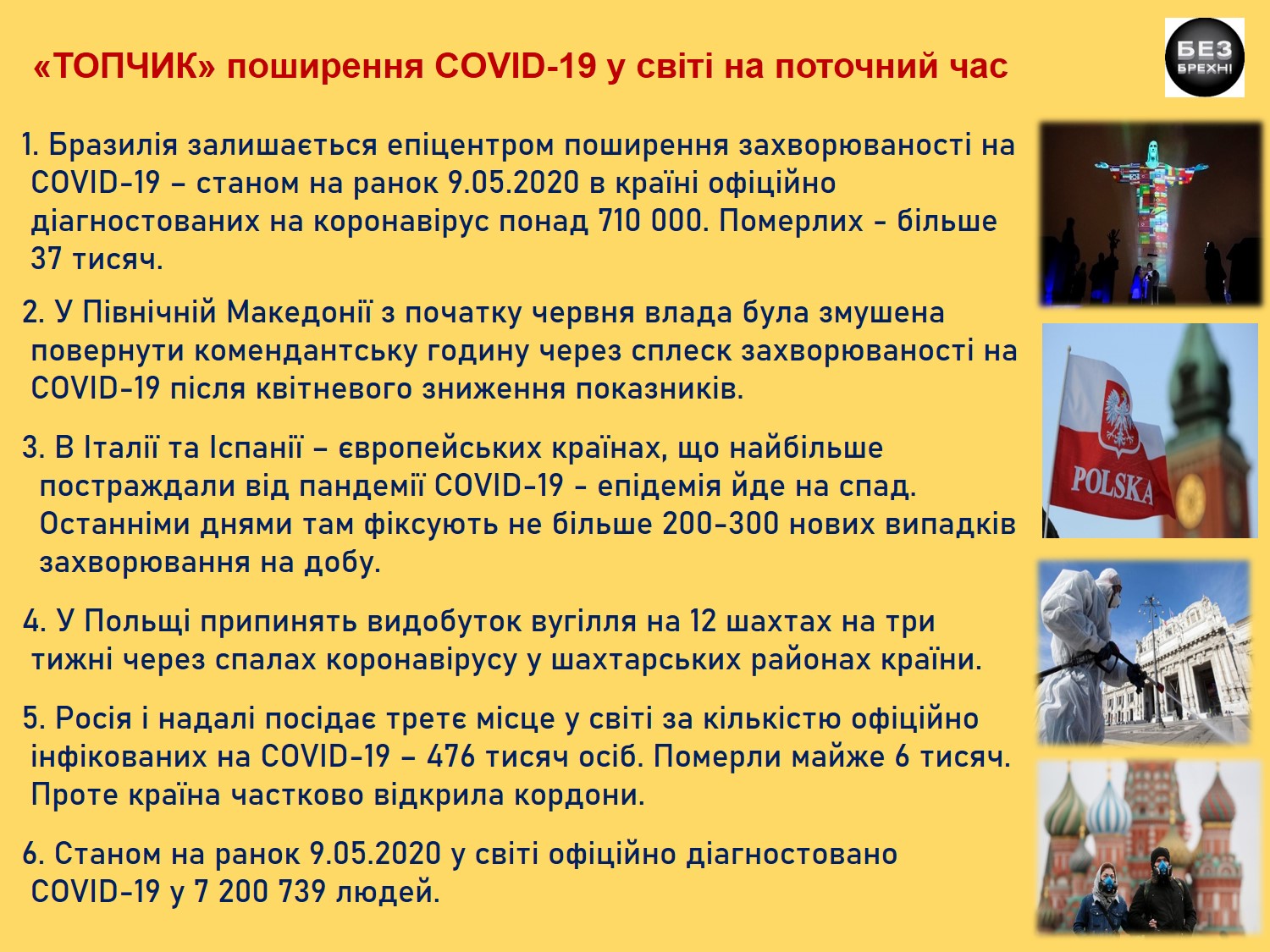 “ТОПЧИК” поширення COVID-19 у світі на поточний час