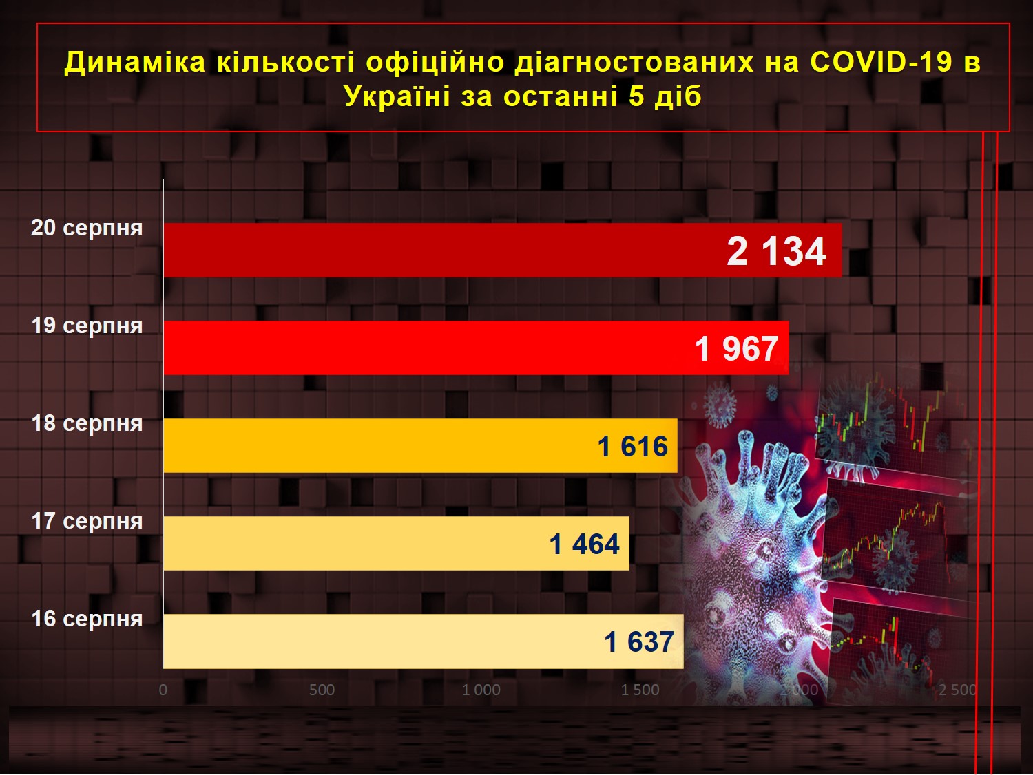 Динаміка кількості офіційно діагностованих на COVID-19 в Україні за останні 5 діб